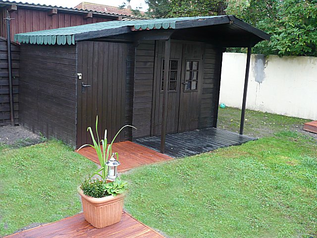 hat ein Gartenhäuschen mit allem was man zum Grillen, Sitzen, Liegen und Sonnen braucht. Für die Sportlichen unter Ihnen steht ein Trampolin bereit.